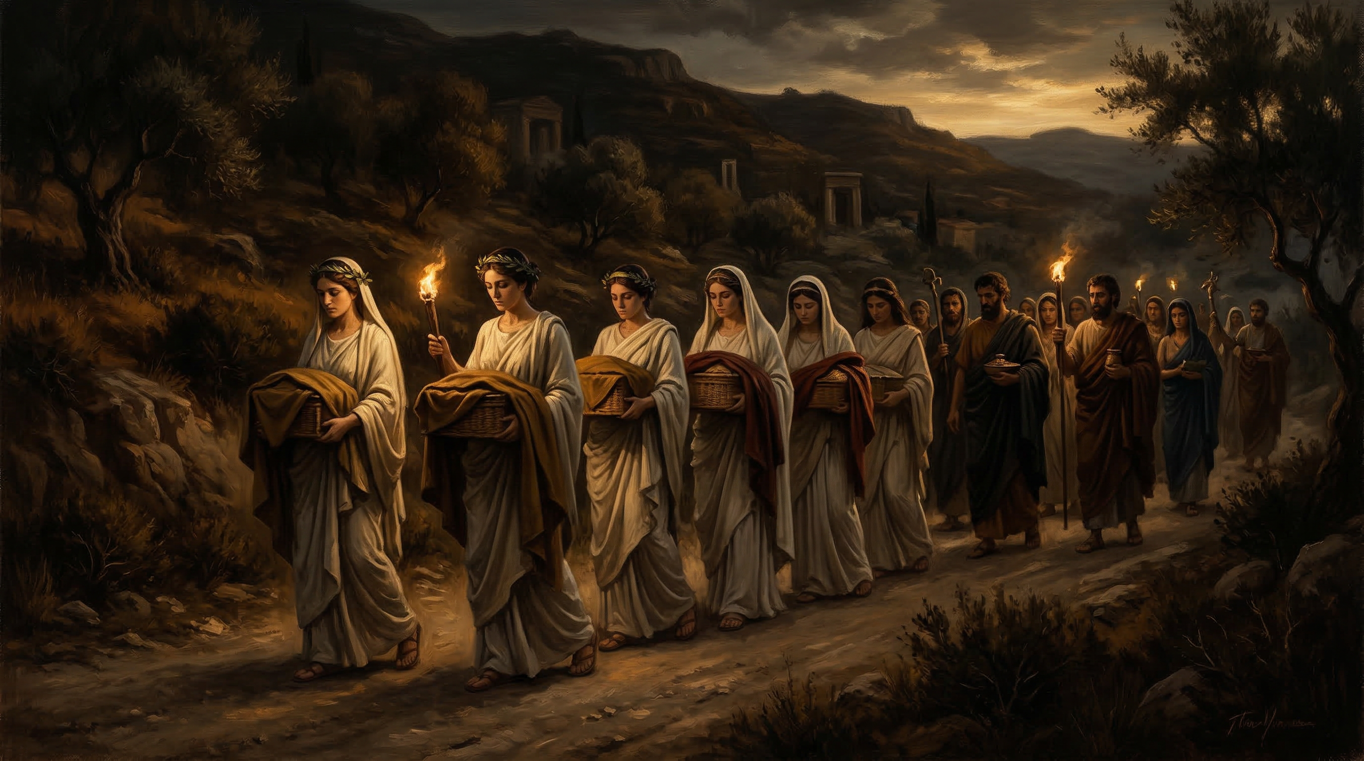 For nearly two thousand years, every September, several thousand people walked the Sacred Way from Athens to Eleusis, fasted, drank the kykeon, and entered the Telesterion. Something happened to them there. The oath of echemythia held: no one described what they saw. When Alaric destroyed the sanctuary in 396 CE, the content of the rites passed out of human knowledge.